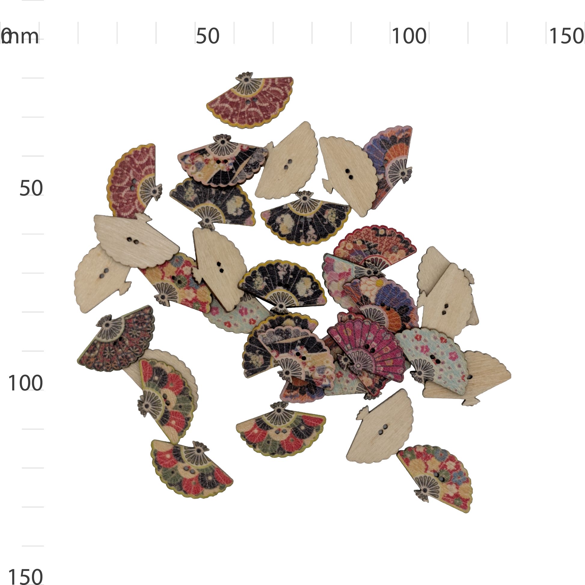 Quality "Wooden Fan" button made from wood and wooden. Perfect for sewing, crafting, garment repair, clothing, bags, cushions, and decorative projects. Durable construction ensures long-lasting use.