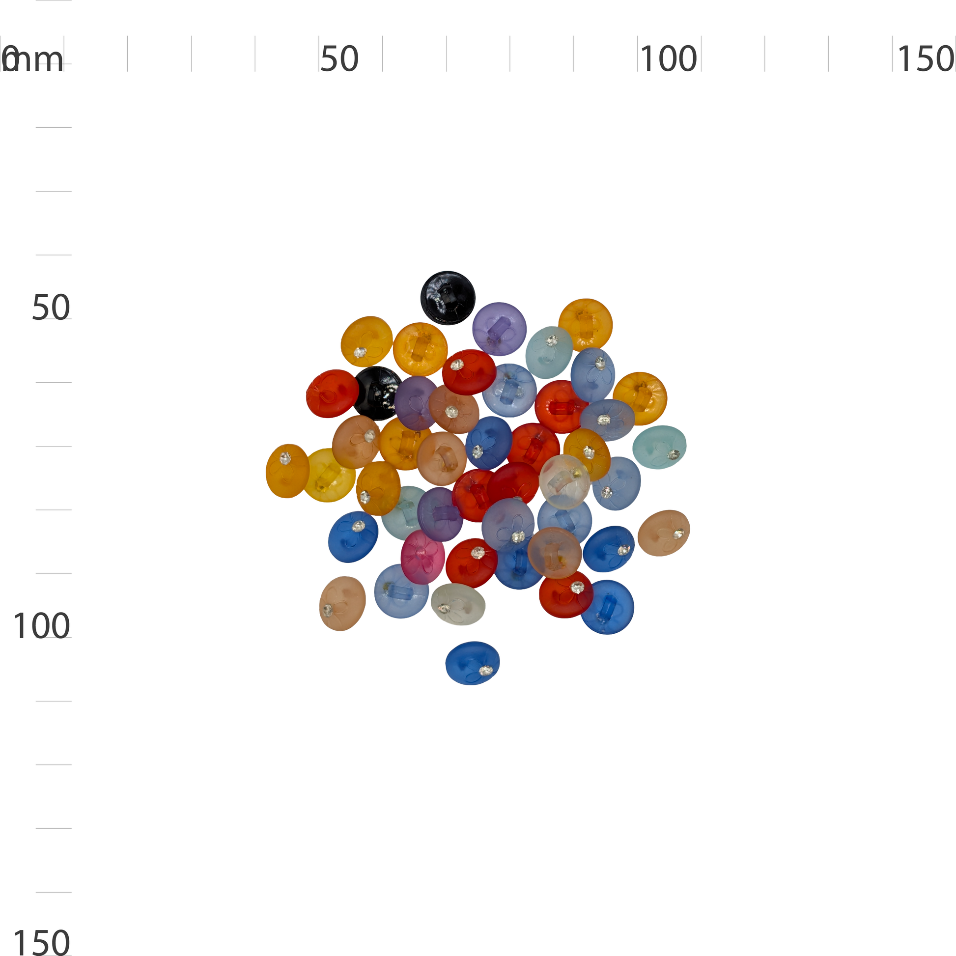 Quality "Acrylic Gem" button made from acrylic. Perfect for sewing, crafting, garment repair, clothing, bags, cushions, and decorative projects. Durable construction ensures long-lasting use. Check the scale image for button size reference.