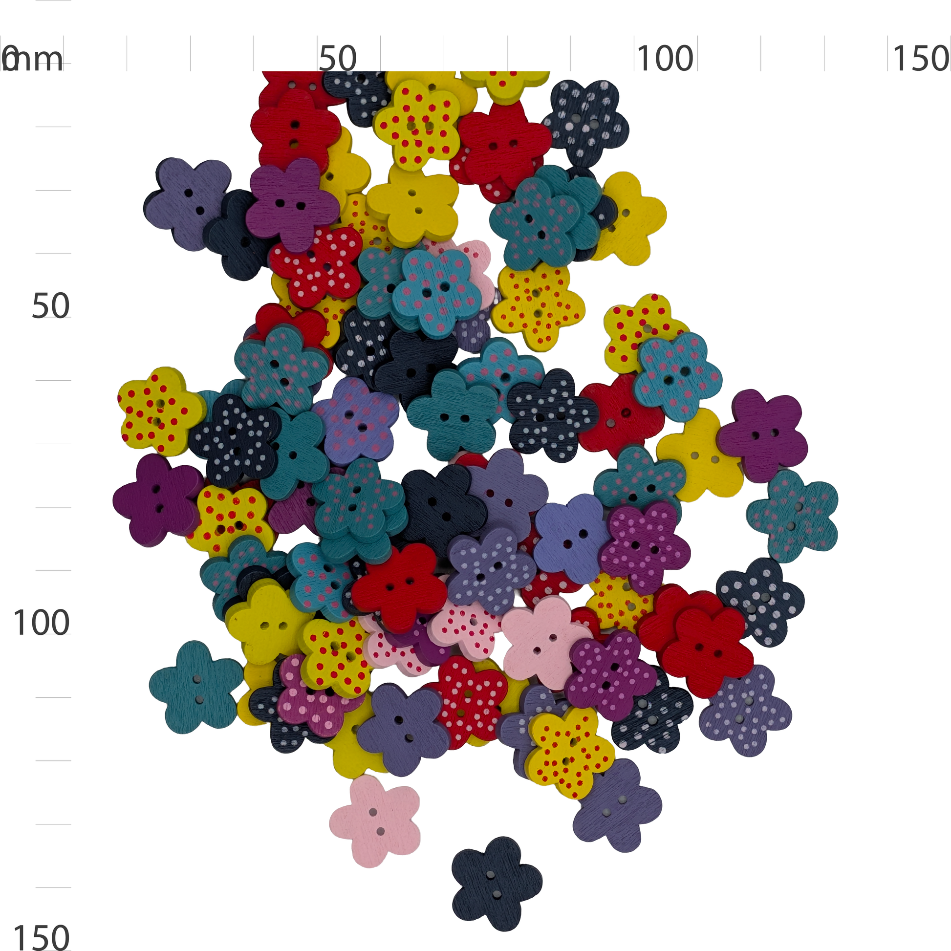 This charming wooden button features a delicate flower design adorned with polka dot detailing. Crafted from natural wood, it adds rustic elegance to cardigans, blouses, and children's clothing. The dotty flower motif brings whimsical character to handmade crafts, tote bags, and decorative cushions. Ideal for vintage-inspired and cottage-style projects.